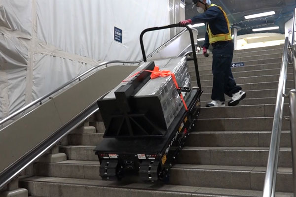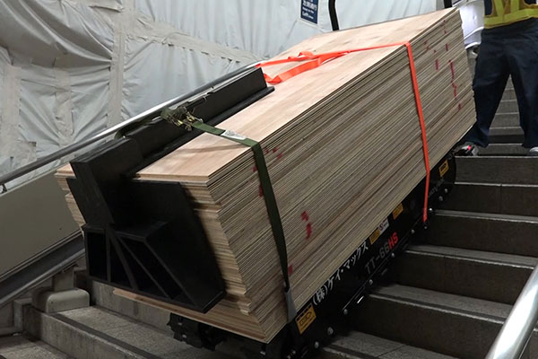 電動重量物運搬台車、階段昇降台車、仮設スロープ+ウインチなどを用いて、運搬する物品の重量・大きさ、現場の状況に応じた最適な方法で確実に階段運搬をいたします。