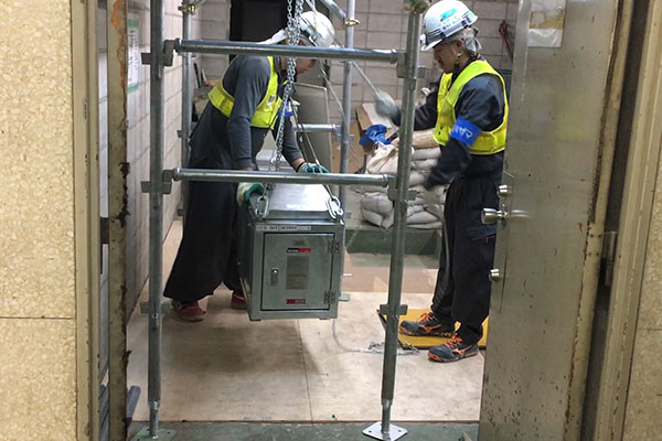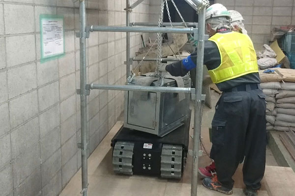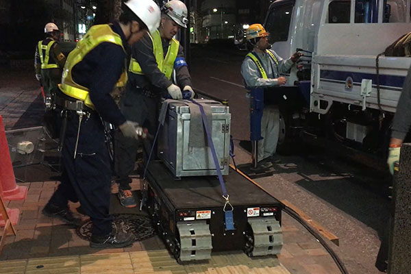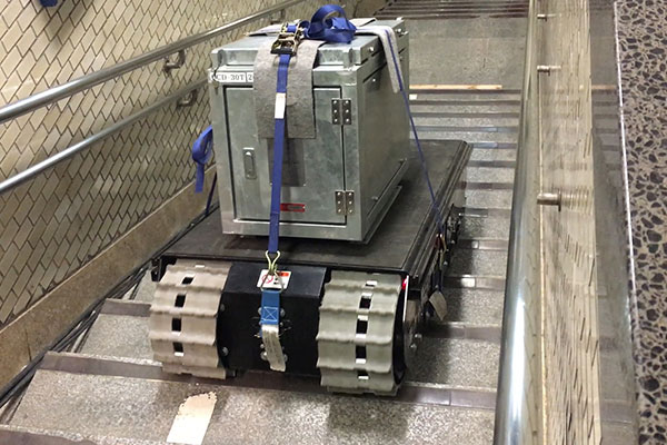 電動重量物運搬台車、階段昇降台車、仮設スロープ+ウインチなどを用いて、運搬する物品の重量・大きさ、現場の状況に応じた最適な方法で確実に階段運搬をいたします。