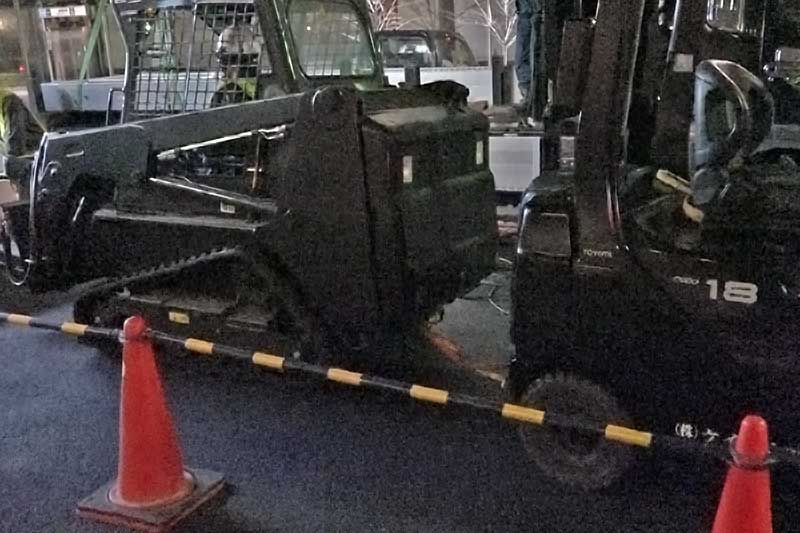 安全対策としてフォークリフトをアンカーとしてトラックローダーに接続
