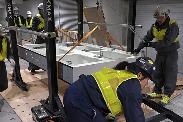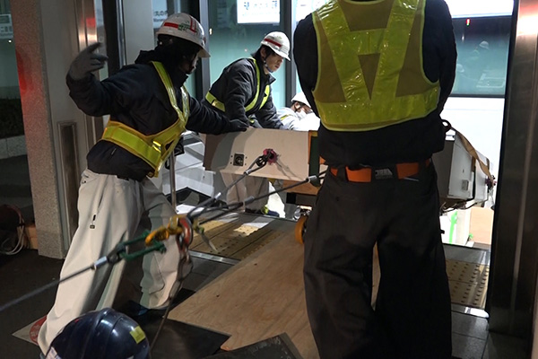 電動重量物運搬台車、階段昇降台車、仮設スロープ+ウインチなどを用いて、運搬する物品の重量・大きさ、現場の状況に応じた最適な方法で確実に階段運搬をいたします。