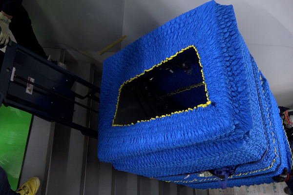 階段昇降台車を使用してキュービクル函体(375㎏)を階段運搬