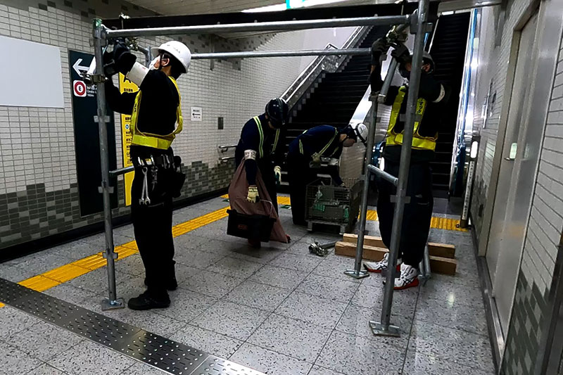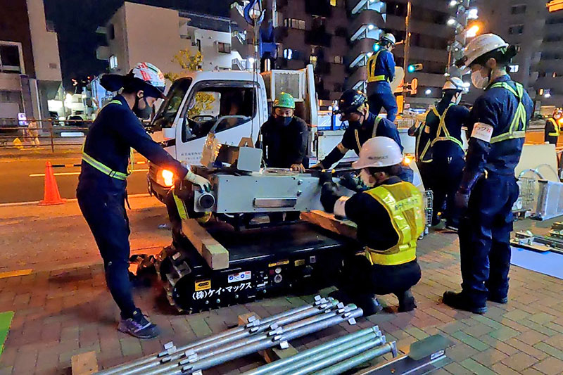 電動重量物運搬台車、階段昇降台車、仮設スロープ+ウインチなどを用いて、運搬する物品の重量・大きさ、現場の状況に応じた最適な方法で確実に階段運搬をいたします。