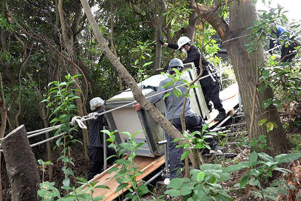 階段だけではなく平地・斜面の運搬、据付も対応可能です。